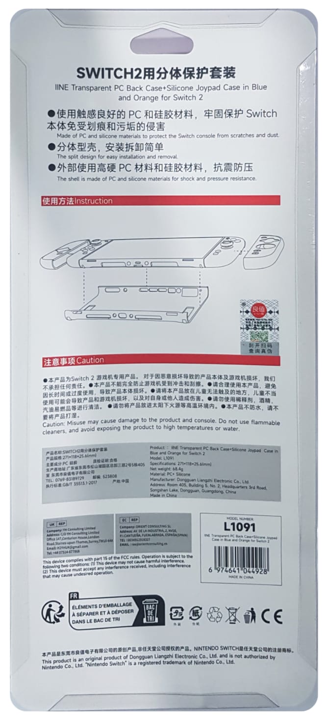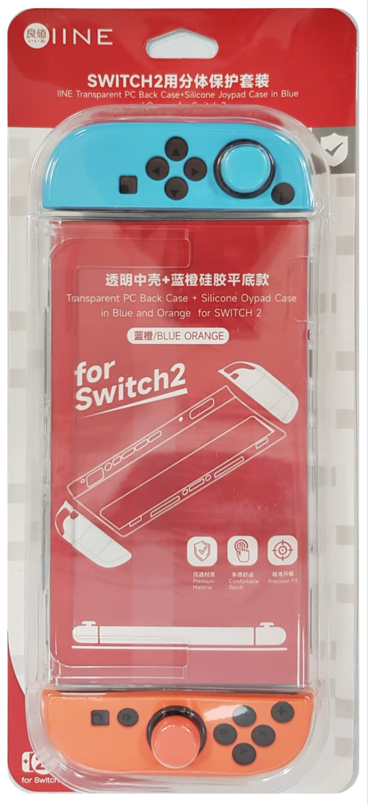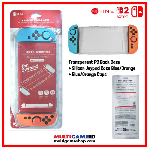 Switch 2 Transparent PC Case with Blue/Orange Silicon Joypad Case (IINE) L1091