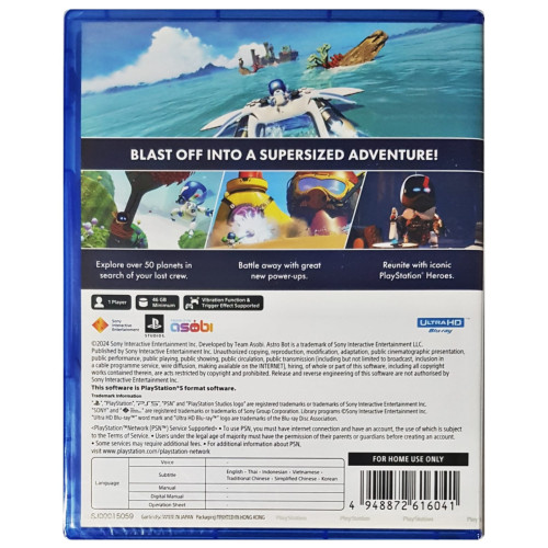 The PS5® mothership has been wrecked, leaving ASTRO and the bot crew scattered all over the galaxies. Time to ride your trusty Dual Speeder across more than 50 planets full of fun, danger and surprises. On your journey, make the most of ASTRO’s new powers and reunite with many iconic heroes from the PlayStation universe!