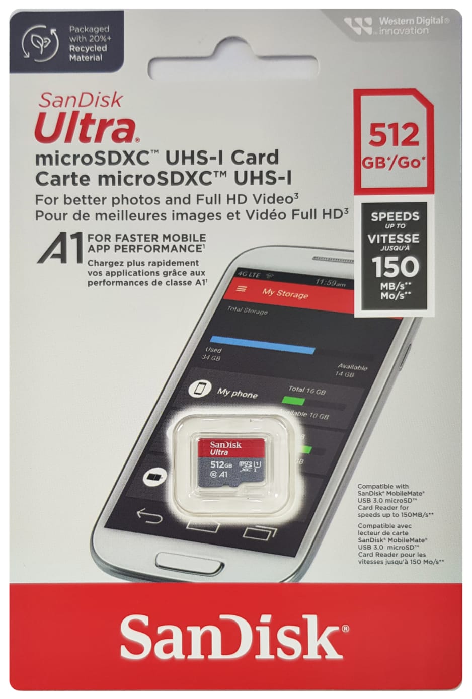 Kartu SanDisk Ultra® microSD™ UHS-I memberi Anda kebebasan untuk memotret, menyimpan, dan membagikan lebih banyak dari sebelumnya. Dengan kapasitas hingga 512 GB, kartu SanDisk Ultra microSD memiliki ruang untuk lebih banyak video Full HD4 dan memberikan kecepatan transfer hingga 150MB/dtk untuk membantu Anda memindahkan konten dengan cepat. Ideal untuk smartphone dan tablet Android™, kartu ini memuat aplikasi lebih cepat dengan kinerja peringkat A1.