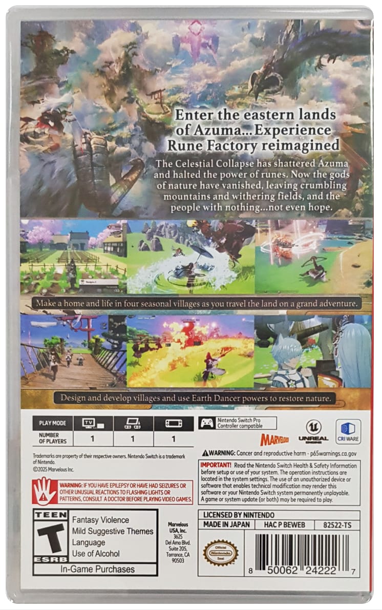 Choose from one of two protagonists whose destinies are intertwined by mysterious forces. Use sacred treasures to fight against the Blight’s many forms to restore the people, and even gods, to their natural glory. Take farming further, as you’ll manage more than a plot, rebuilding entire villages and cultivating new allies and resources along the way. Explore seasonal-themed villages heavily inspired by traditional Japanese culture, each with brand-new festivals and revamped fan-favorites, as well as charming romance candidates.