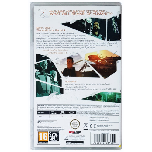 Berlin, 2048 – The world is on the brink. Lack of resources, illnesses caused by polluted air and water, crime on the rise, war. Governments and companies promise remedies through technological progress. Drones and humanoid robots replace humans in the public sector, everything is interconnected, surveillance has become omnipresent.