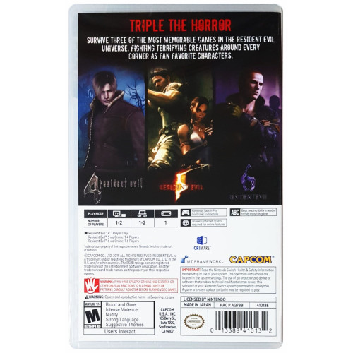 - Play anywhere: play Resident Evil Triple Pack on the go using the Nintendo Switch system's handheld or at home in tabletop mode.